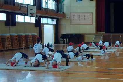 今日はブリッジや前転などの練習をしました。