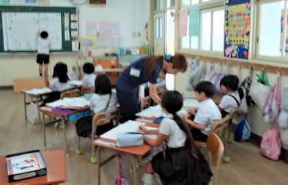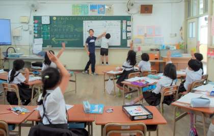 もとの数よりどれだけ大きいのか、小さいのか、数直線を指さしながら