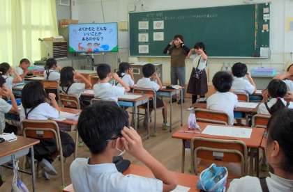 東小路小学校の栄養教諭による食に関する指導がありました。