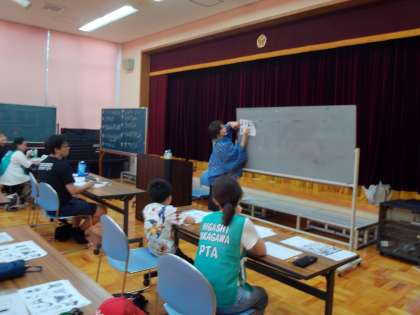 漫画・イラストレーターのオサ氏をお招きし、PTA主催行事「絵心ワークショップ」を行いました。