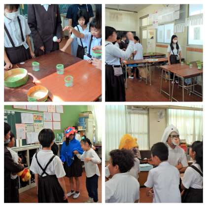 お店をするグループも回るグループも、それぞれみんなで協力して