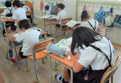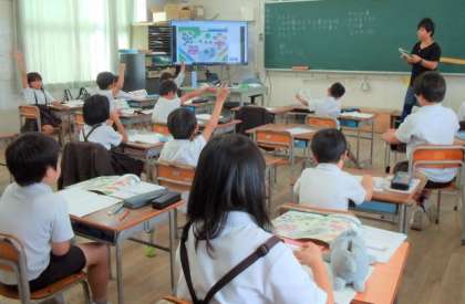 今日は、遊園地で遊んでいる子ども達の絵を見て、「どうすればかけ算の式に表せられるのか」みんなで考えました。