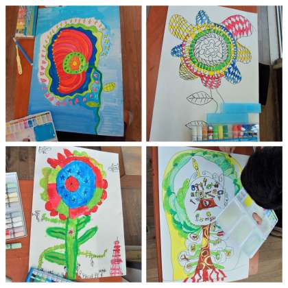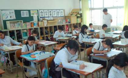 細かく描いた線からはみ出さないように、丁寧に色を塗っていっていました。