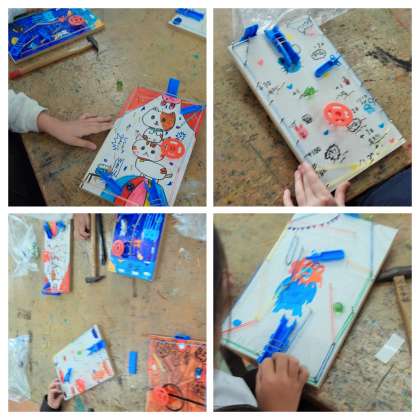 『コリントゲーム』の仕上げをしています。完成した子から自分で制作したゲームを楽しみました。