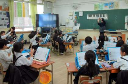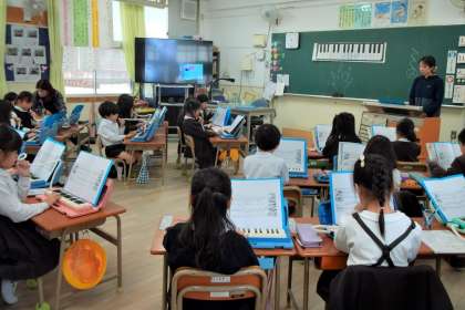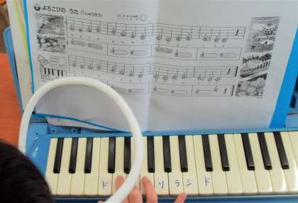 『よろこびのうた』をけんばんハーモニカで練習しています。