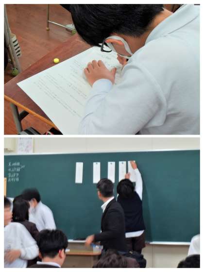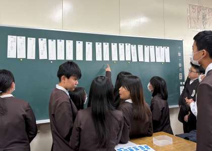 「平和」をテーマに全員で俳句を一句作り、お互いの作品の中で1番いいと思うものを選びました。