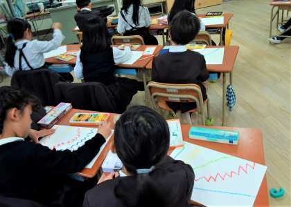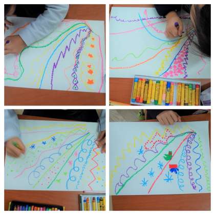 みんな好きな色を選んで、カラフルに楽しく描いていました。