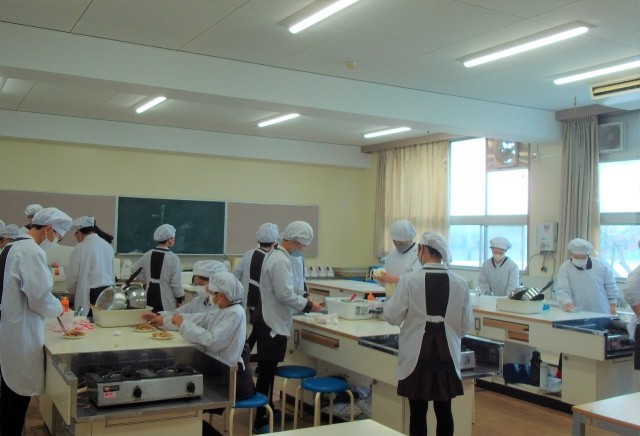 班ごとに役割分担をしながら調理し、美味しそうなジャーマンポテトが出来上がっていました。