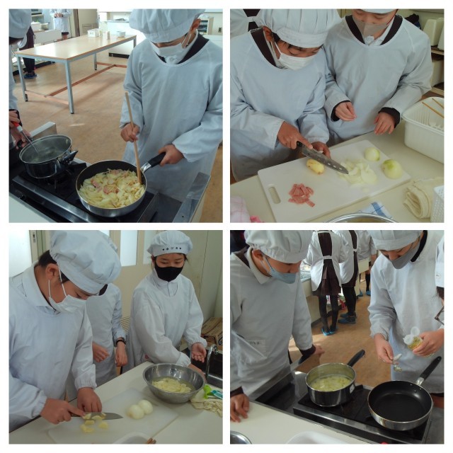 6年1組が調理実習を行いました。