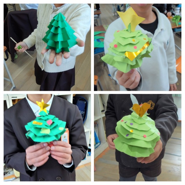 今日は割り箸を使って、ミニクリスマスツリーを作りました。