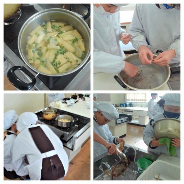 班ごとに役割分担をしながら調理し、美味しそうな「味噌汁・ご飯」が出来上がっていました。