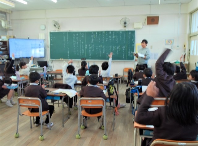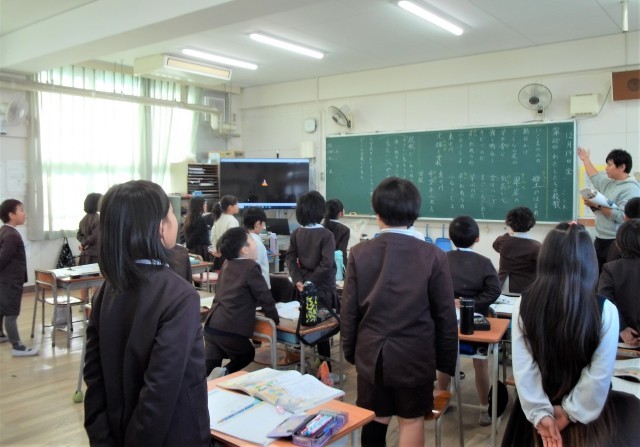 『わたしたちの校歌』のお話を読んで、自分たちの校歌について、みんなで考えました。