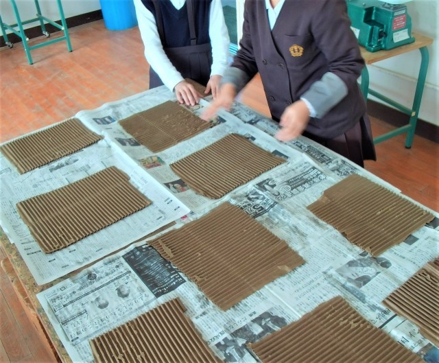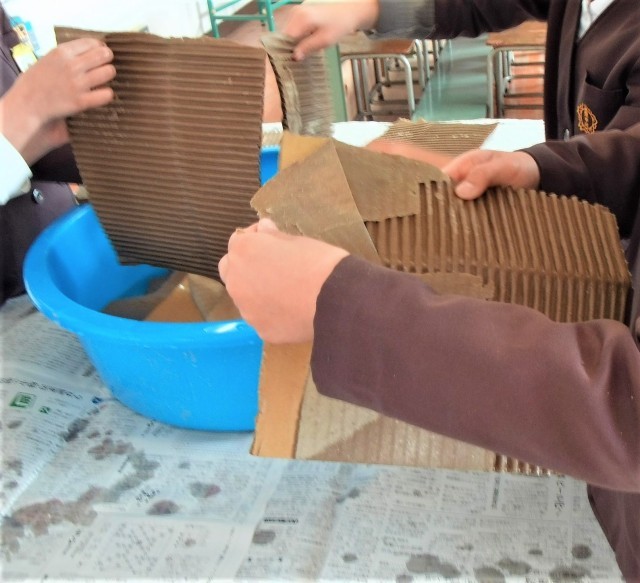 今日は、版画の版を作るための材料を、段ボールから取り出しました。