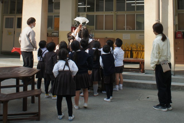 子どもたちは、風を受けてゆっくり落ちてくるパラシュートに大興奮していました。