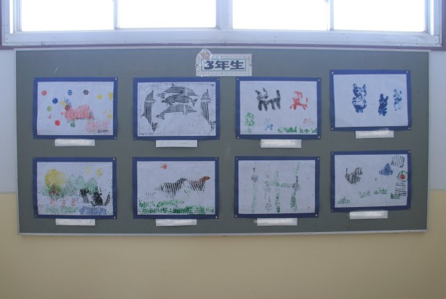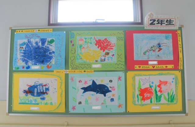 低学年の子どもたちの作品が、にぎやかに掲示されています。