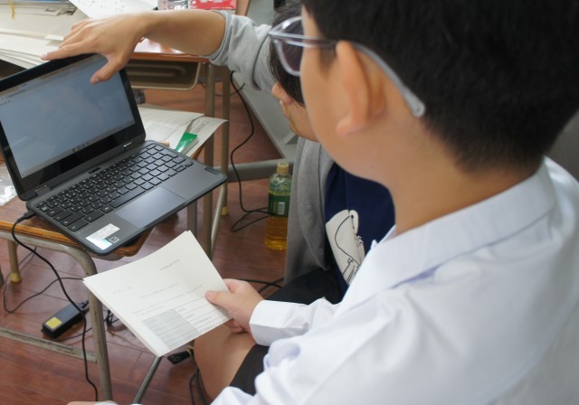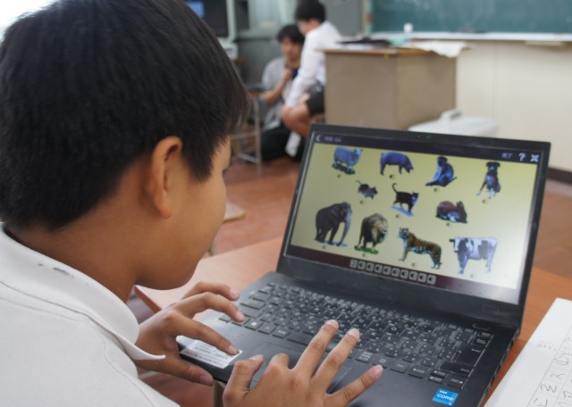 自分の好きなものを日本語で書いたり、動物クイズをしたり、みんなそれぞれの課題に取り組んでいます。