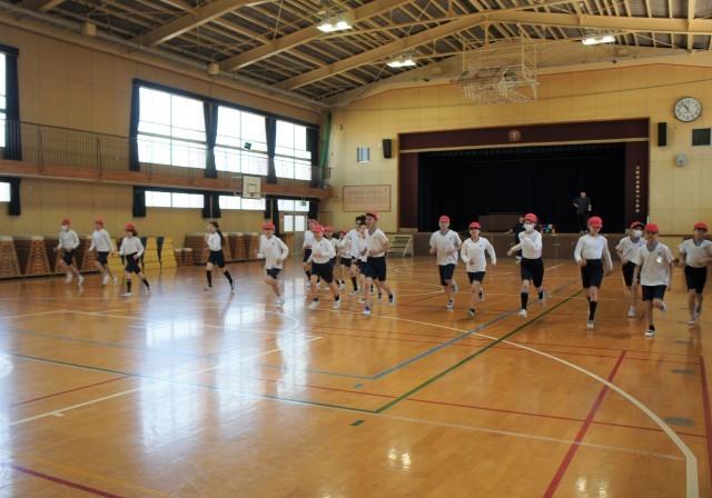 電子音が鳴るまでに20mを走り切ろうと頑張っています。