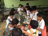 最後の活動シャーベット作りが始まりました。ジュースと砂糖を混ぜて缶に移し、氷と塩...