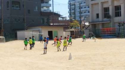 土曜日の午前中にサッカーとドッジボールの活動が行われていました。