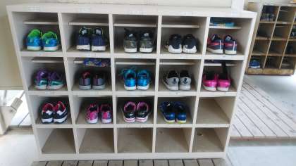 また下靴の入れ方も写真のようにきっちりとかかとをそろえて入れるように指導しています。きっちりとそろっていると見ていて気持ちのよいものです。