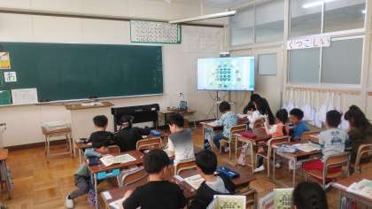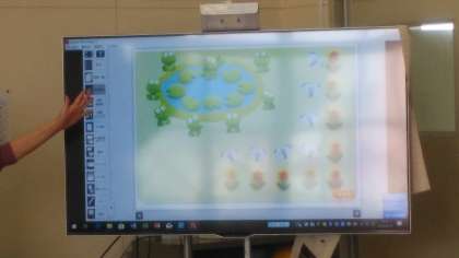 電子黒板に教科書を映し出してみんなで数えました。