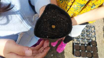 理科の学習としてレイシ(ゴーヤ)の種植えをしました。