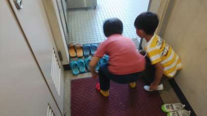 使い終わった1年生がスリッパを
