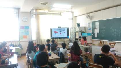 子どもたちは楽しみながら英語に親しんでいました。