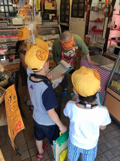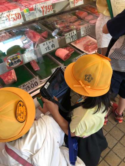 肉屋グループはお店の人の話を聞いた後、お肉の値段やお店の空いている時間などお店の人にインタビューしました。