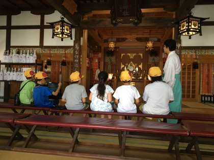 神社グループは神主さんのお話を聞いた後、神主さんの生活リズム、神社では何をしているかなどについて質問していました。