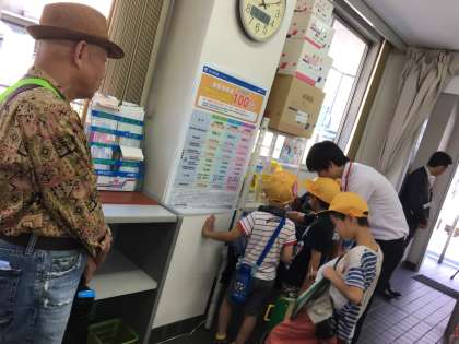郵便局グループは、郵便局前にあるポストに一日に投函される手紙やはがきの量など、郵便局のお仕事についてインタビューをしていました。