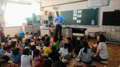 今日は1,2年生がC-NETの先生と英語活動を行いました。