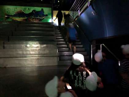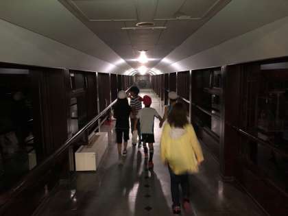 懐中電灯の光を頼りに昼間通った研修棟へ向かいます。