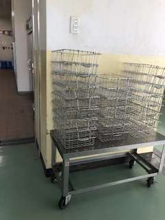 給食当番さんや給食委員さんが丁寧に仕事をしているので、給食時間が終わったあとの給食室前廊下はご覧のとおり!きれいに整っています。