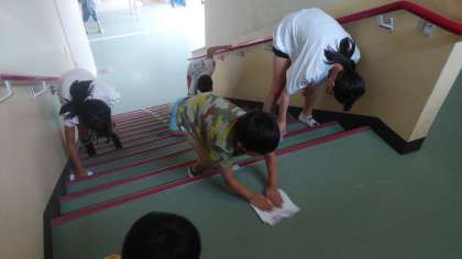 高学年の児童が低学年の児童に優しく声をかけながら清掃している姿が多く見られました。高学年としての自覚ある行動も多く見られました。