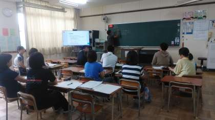 模擬授業(先生を児童と見立てて行う授業)を行い、