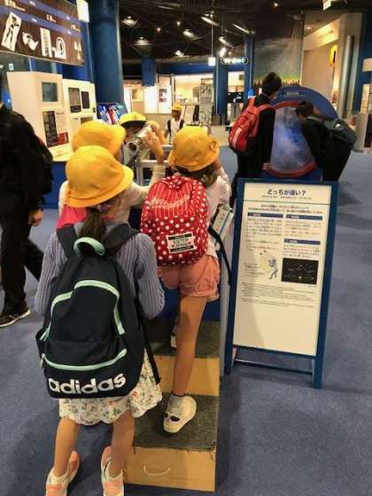 プラネタリウムに感動してその後友だちと星のことを話している子など、