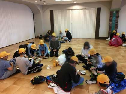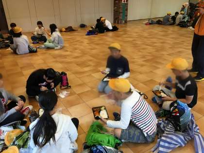 あいにくの雨模様のため室内での昼食になりました。