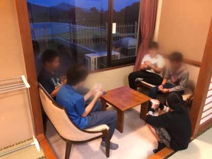 宿舎の方々の歓迎を受けたあと、避難訓練を終え、夕食までのリラックスタイム