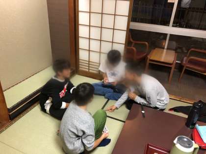 部屋でみんなでトランプをしたりしながら、ゆったりと過ごしています。
