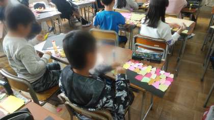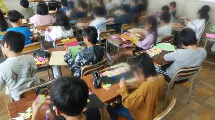 紅葉をテーマにみんなで11月の教室掲示づくり