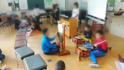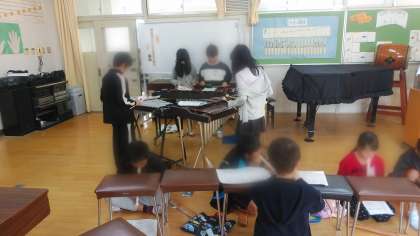 小路小学校では5年生が国際理解教育として日本の伝統音楽に挑戦し、発表会で演奏します。