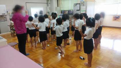 みんなで楽しく体操をして、よい姿勢が習慣づくようにしていきます。