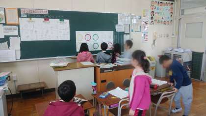 食べ物のはたらきによって食材を黄赤緑の三色に分ける学習をしました。