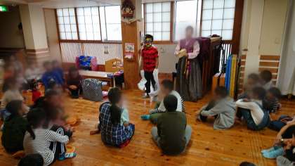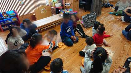 保育園の子どもたちに明日の発表会で行う歌や手遊びを教えたりしました。