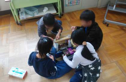 身の回りにある様々なかたちのものを使ったものづくりを通してその特徴について学びました。