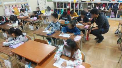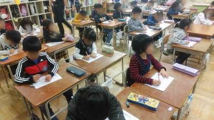一生懸命育てたあさがおのたねをメッセージ入りの袋に入れてプレゼントします。