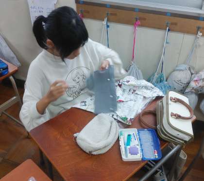5年生が家庭科の学習としてエプロンづくりにチャレンジ