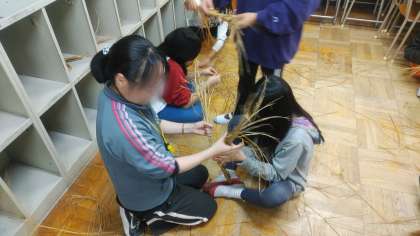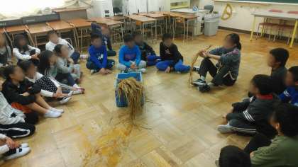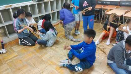 いただいたわらを使ってわら縄づくり体験
