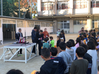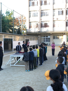 そして、校長先生からのお話と、児童会の運営委員から、赤い羽根募金のお話がありました。